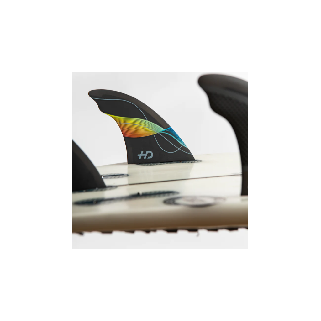 La série hydrodynamique mise sur des matériaux techniques pour rester légère tout en restant robuste. Sur la pratique quotidienne, ça se traduit par des ailerons moins fatigants pour la planche tout en résistant aux contraintes.