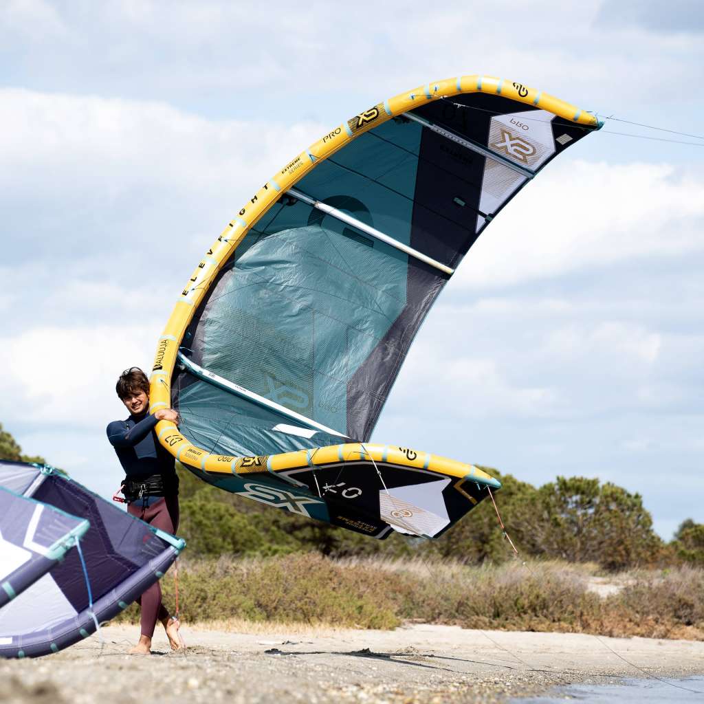 La XS Pro présente la construction la plus légère et la plus moderne sur le marché, ce qui en fait une aile incontournable. Ses caractéristiques rigides et ultra-directes sont prisées par ceux qui souhaitent être catapultés avec un élan avant dans des megaloops puissants. Supérieure dans ses caractéristiques de vol et plus durable, la XS Pro offre une longévité et des performances de haut niveau pour les accros du Big Air.