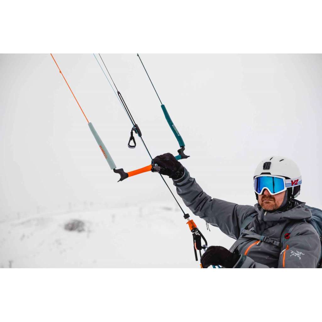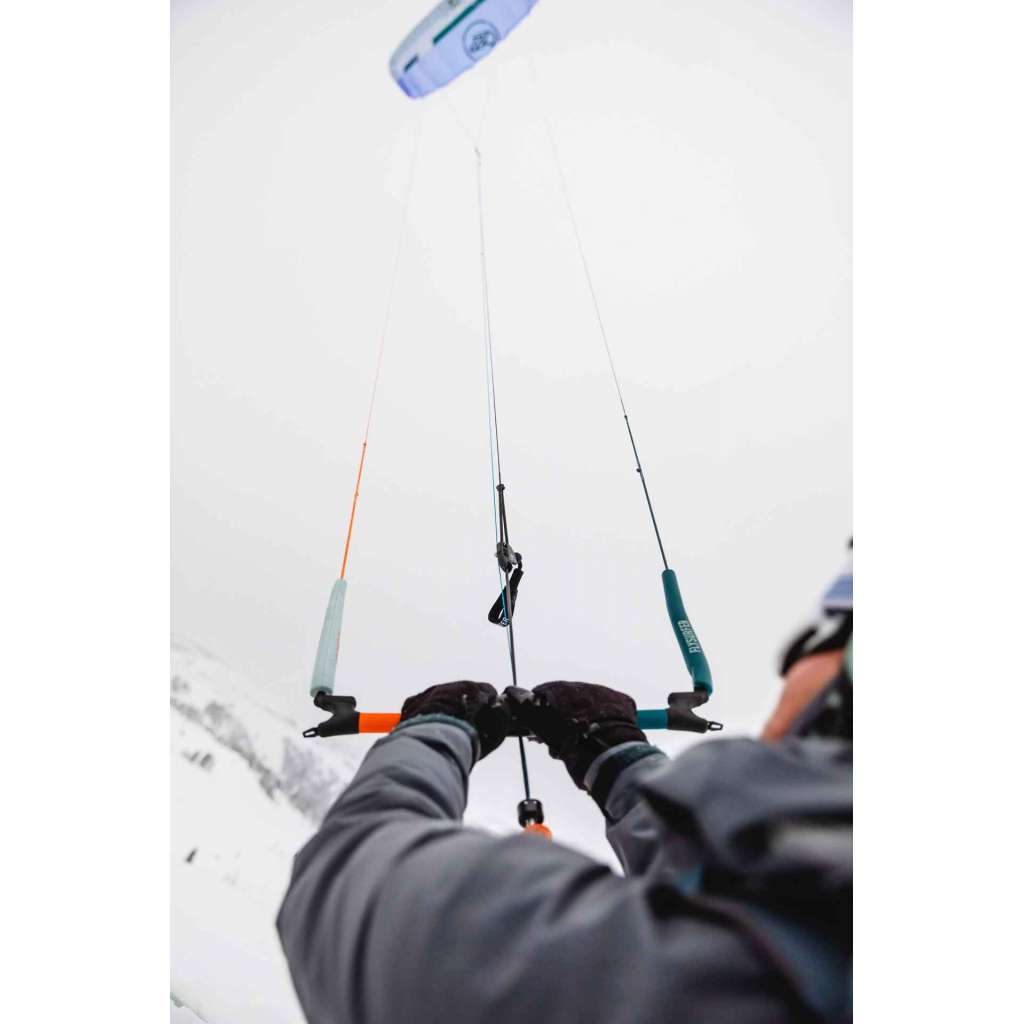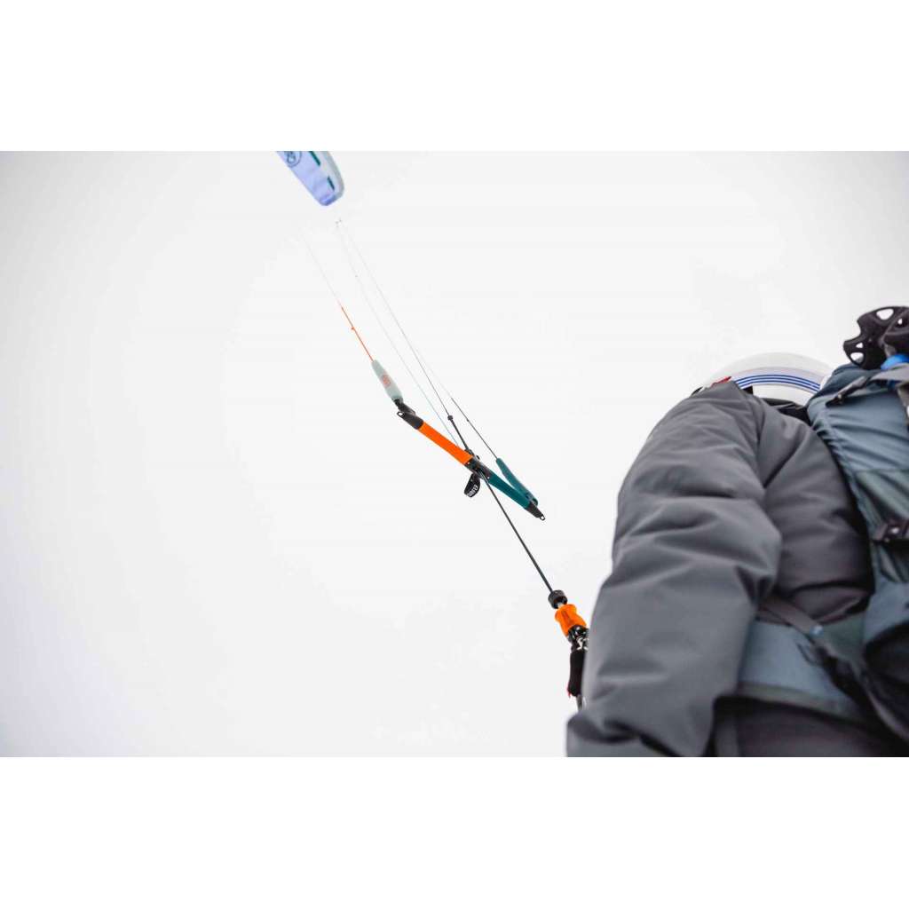 La CONNECT2 est une barre 4 lignes avec sécurité sur un avant. Un code couleur permet de distinguer les avants et arrières et le côté droit du côté gauche. Elle ne pèse que 840gr. (lignes comprises) et permet d‘adapter une ligne de freins. Les lignes font 21m (14+7m). Les avants peuvent être dévrillés à la main juste au dessus du chicken loop.