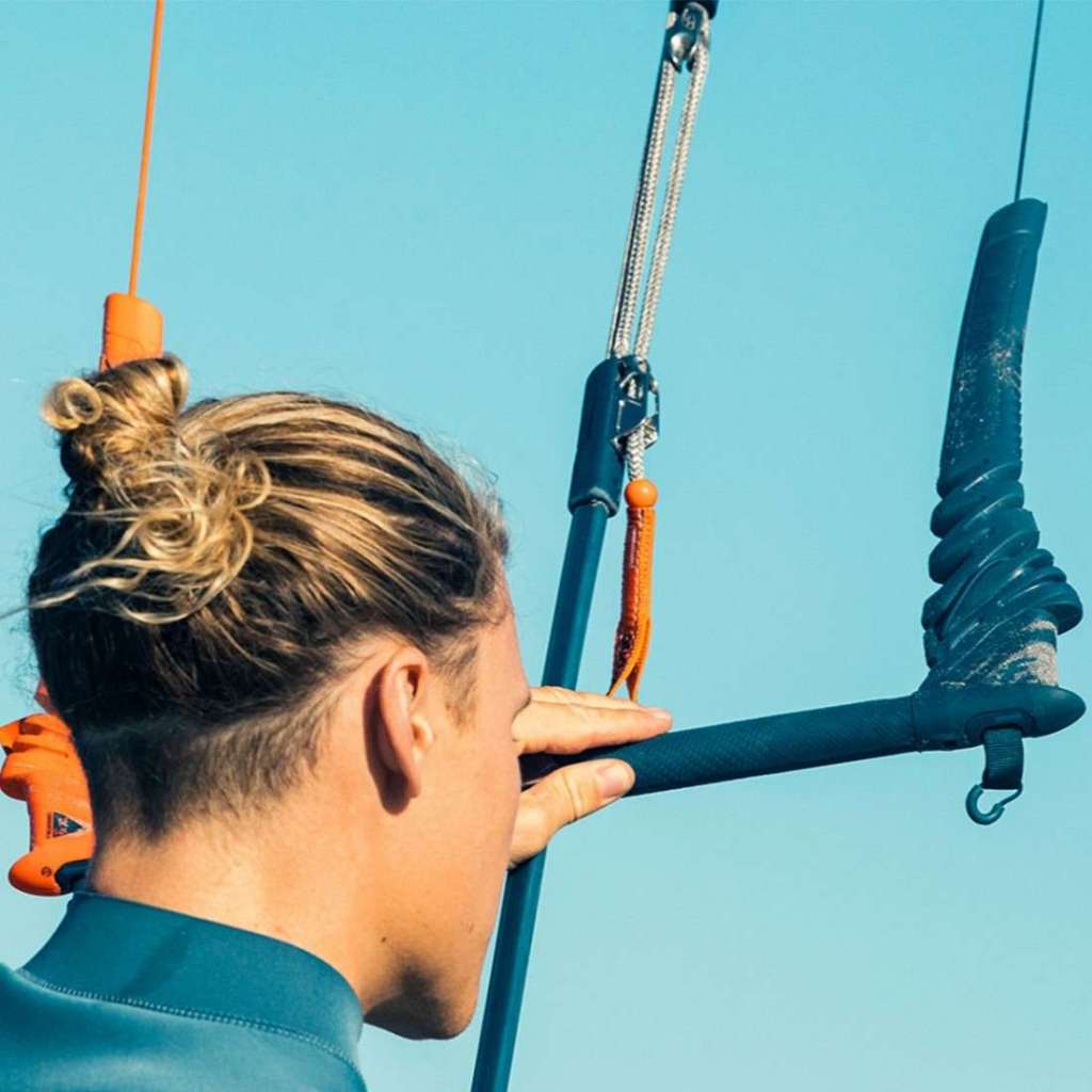 Les flotteurs intégrés abritent un système de réglage de la longueur de la barre. Tirez simplement la languette sous la barre et faites pivoter l'insert pour changer de taille. Vous pouvez également ajuster la longueur des lignes arrières. La Lifeline est logée dans un nouveau boîtier rectangulaire qui la protège des frottements avec les tubes en aluminium et les doigts de l'utilisateur.