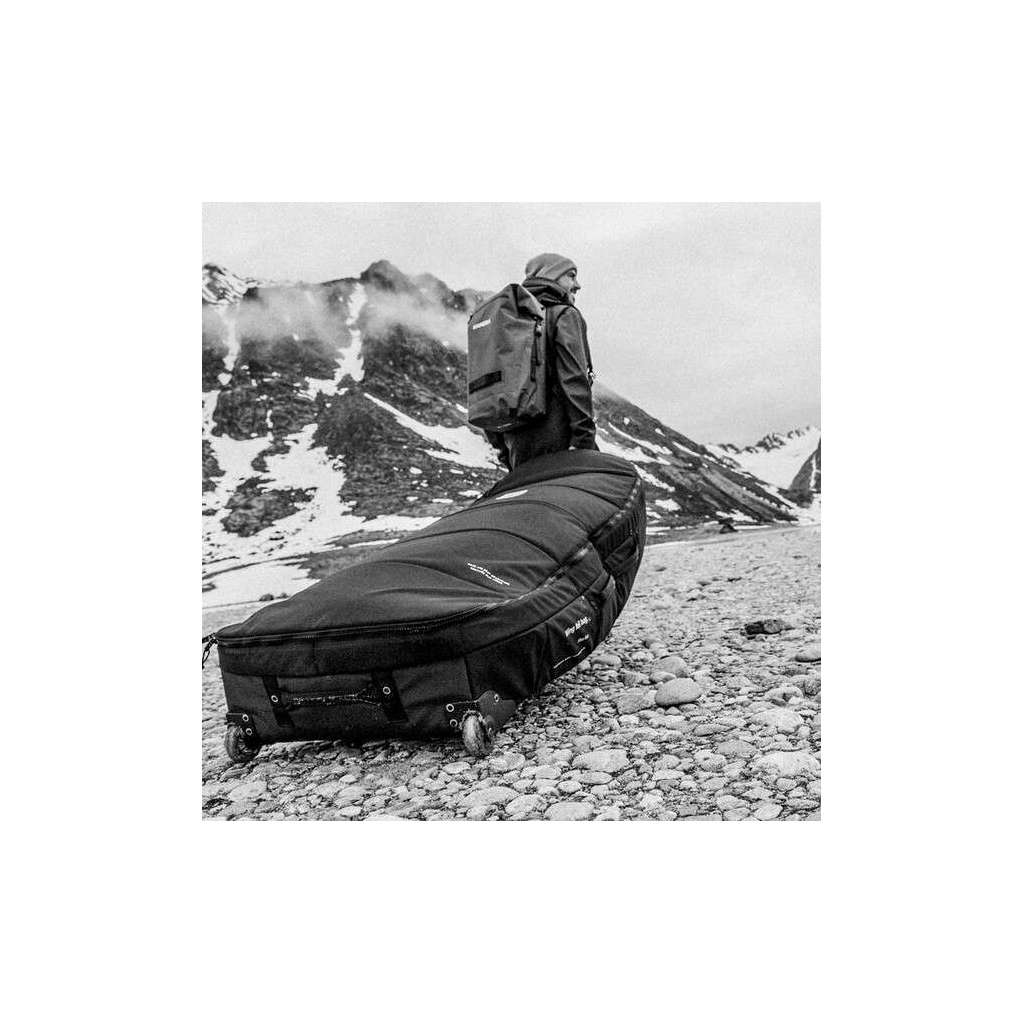 Aux riders qui voyagent régulièrement et veulent une protection robuste pour planche et foil, tout en gardant une solution pratique pour rouler et porter le sac.