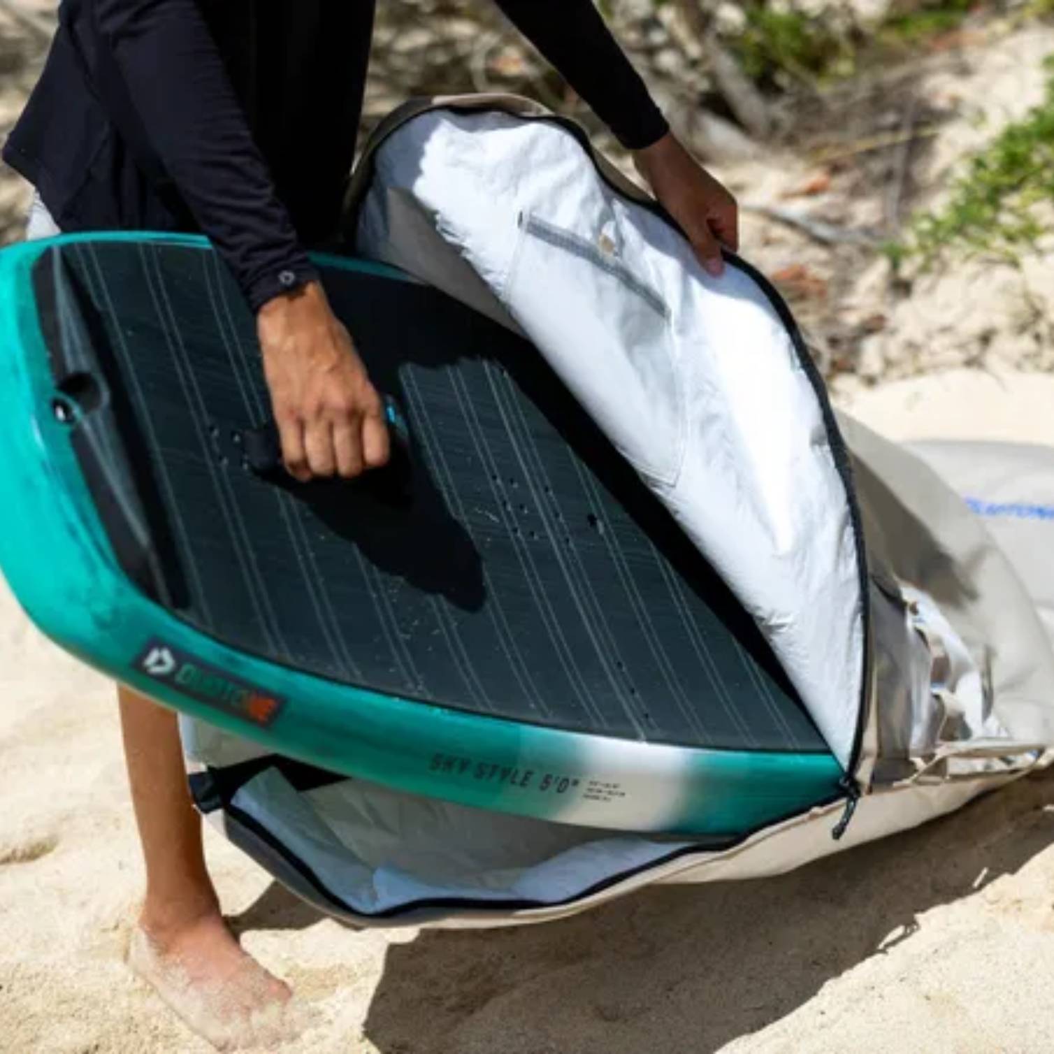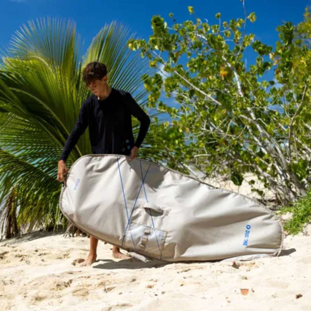 - Compatible foil : Housse équipée d’une fente pour laisser le mât de foil montés.