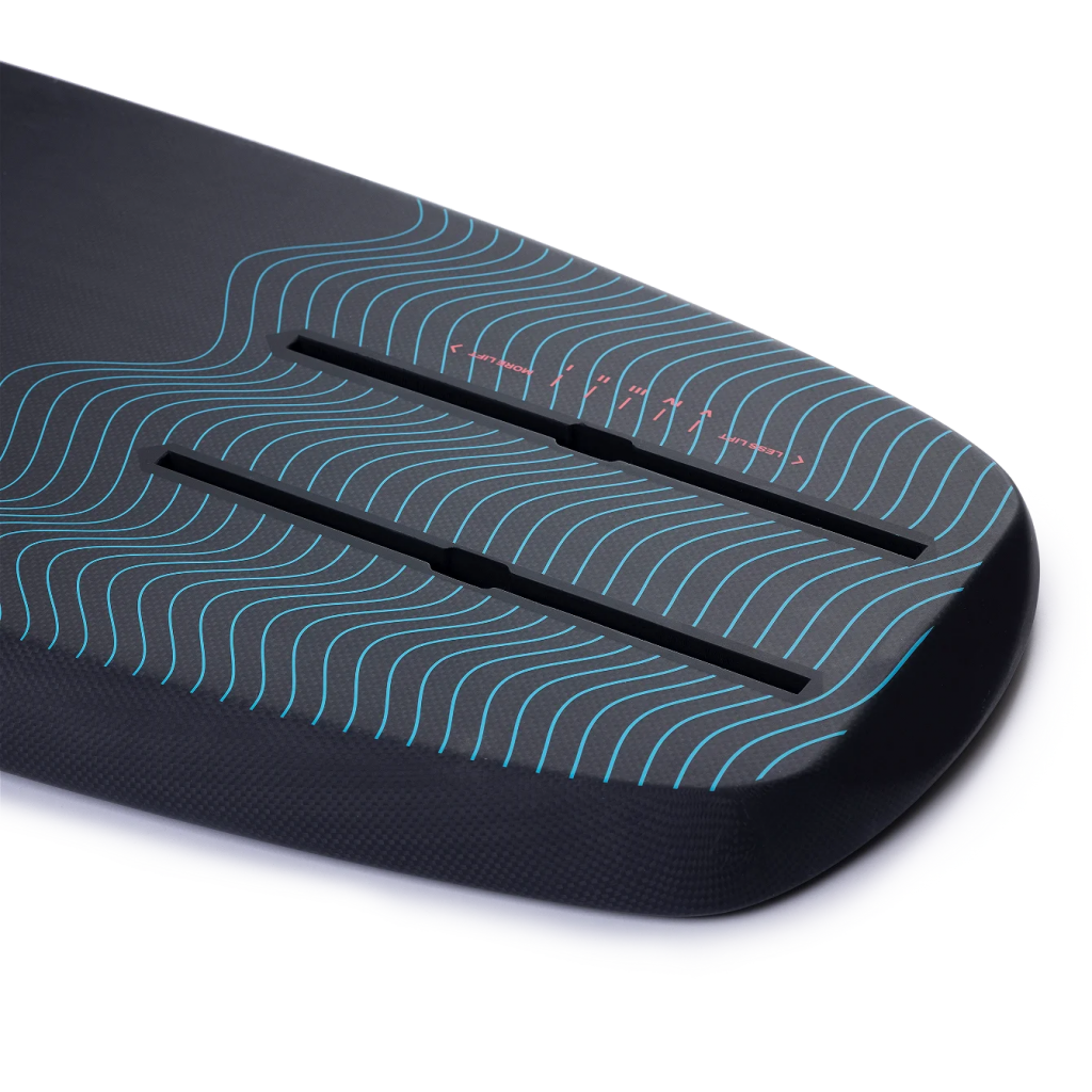 Le pont de la Strider SLS est légèrement abaissé, offrant une connexion optimale avec le foil et permettant de rapides ajustements de position des pieds. Cette caractéristique assure une réactivité instantanée lors des transitions, pour un contrôle maximal de la planche dans chaque manœuvre.