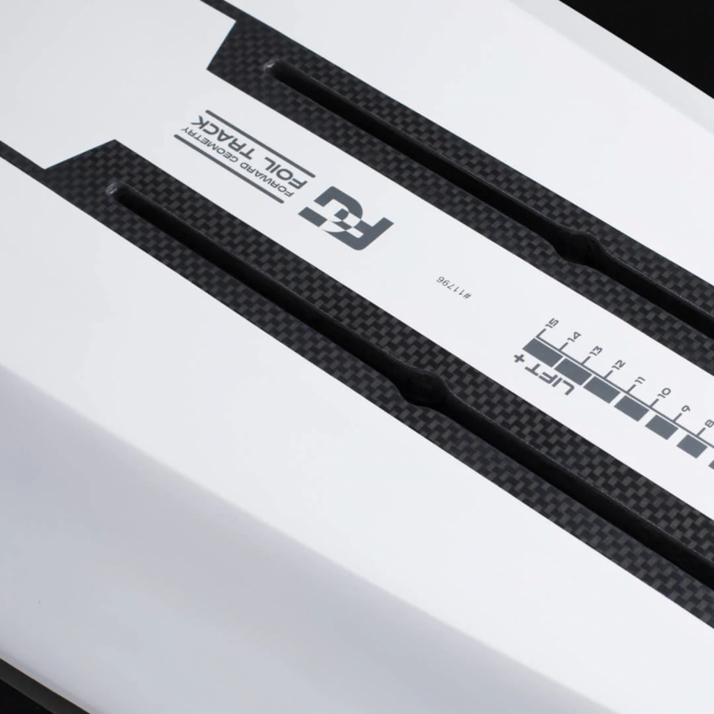 Le système Forward Geometry place les tracks de foil plus centrés sous la planche, réduisant le swing weight et augmentant la réactivité. Résultat ? Des virages plus serrés, une sensation de connexion directe au foil, et la possibilité d’adapter son setup en fonction de son style et des conditions.
