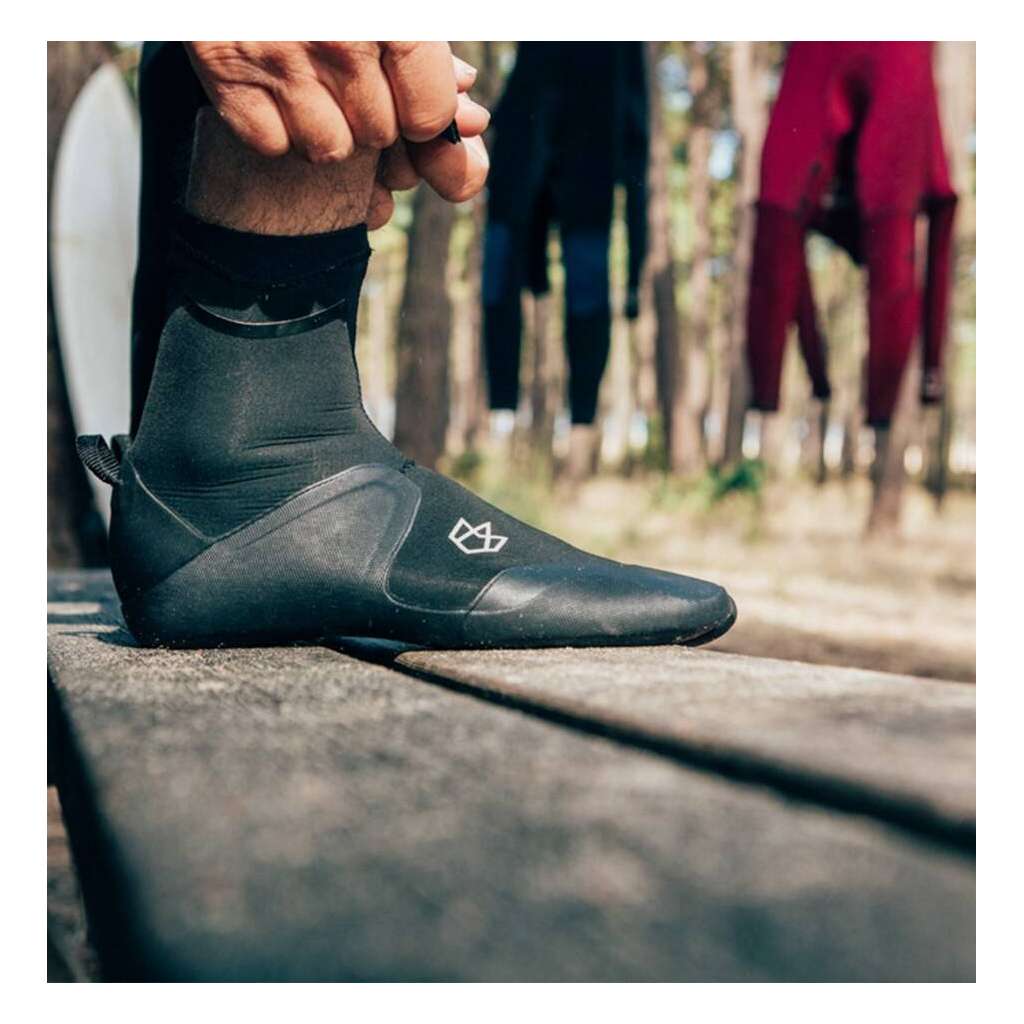 Le néoprène 3 mm associé au design Round Toe offre un bon compromis entre chaleur et flexibilité. On ressent immédiatement la différence sur la durée d'une session : les pieds restent au chaud sans gêner les mouvements, et le tissu X10D Jersey apporte une sensation douce contre la peau.