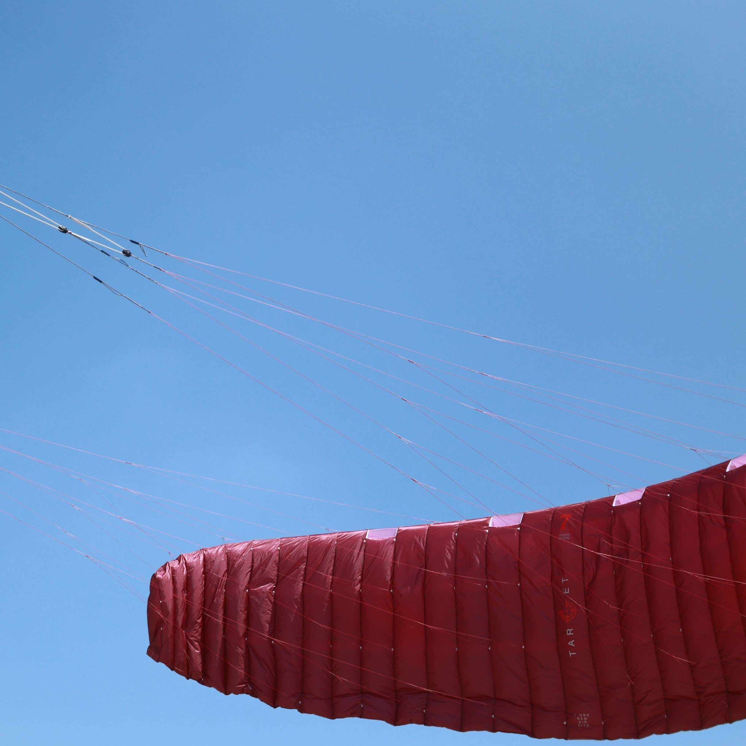 - Tissu 38g et Renforts Insignia : La Target est construite avec un tissu de 38g offrant une étanchéité accrue, renforcée par des patchs de renfort insignia pour augmenter la durabilité. Cette construction garantit une aile légère mais résistante, prête pour de nombreuses sessions.