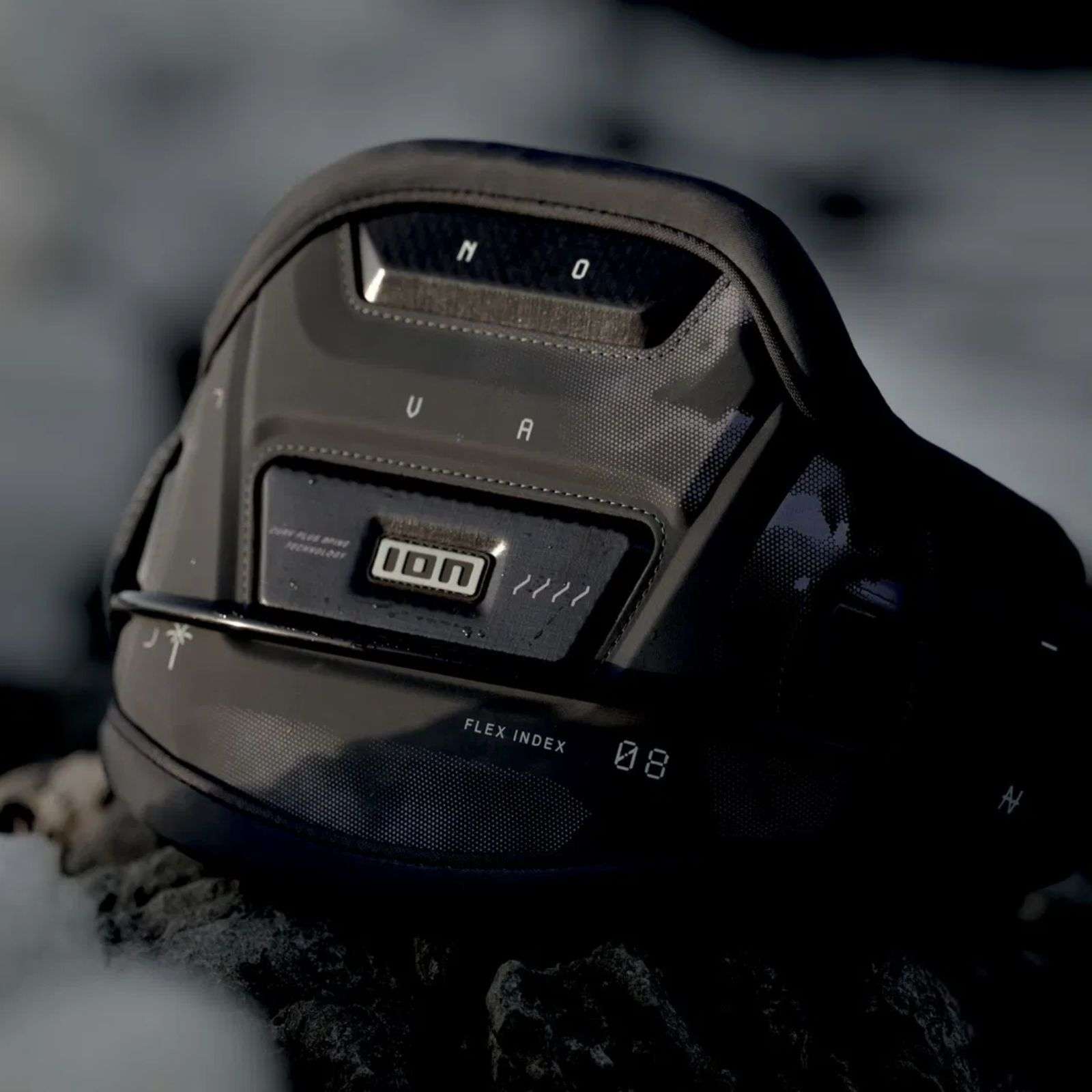 ION a opté pour une construction hybride sur le Nova : une coque semi-rigide en Curv combinée à des flancs souples. On obtient suffisamment de rigidité pour transférer la puissance de l'aile efficacement, tout en gardant une bonne liberté de mouvement pour les rotations et les manœuvres. La coque Curv permet aussi de répartir les efforts de façon homogène sur tout le dos.