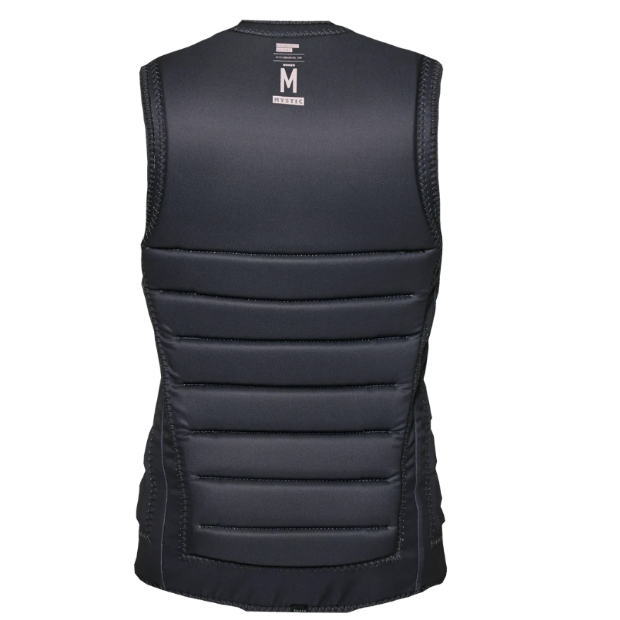 Le gilet d'impact Mystic Juice en mousse avec fermeture éclair frontale, surpiqûres en zigzag et une gravure Mystic au dos. Élégant mais minimaliste.