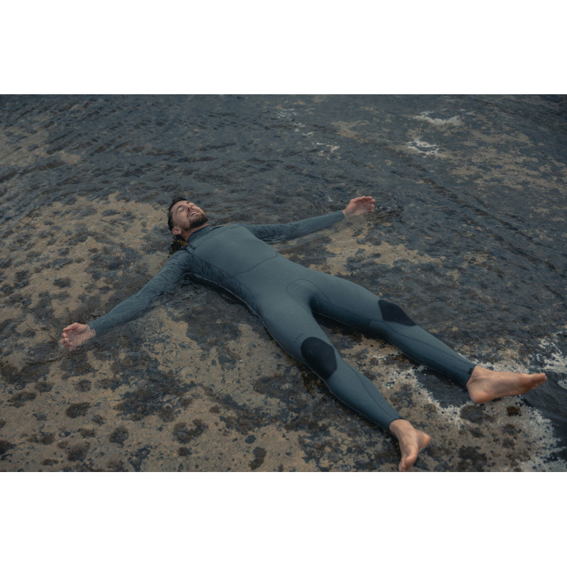 La Seek Core 4/3 utilise un néoprène à base de caoutchouc naturel, sans pétrole. Plus chaud et plus souple que le néoprène pétrochimique classique, il offre un meilleur confort à l'enfilage. La doublure Hot_Stuff retient efficacement la chaleur corporelle, complétée par la doublure Silk_Stuff sur la poitrine et les épaules. La coupe Sweep_Cut supprime les coutures aux épaules pour une liberté de mouvement maximale.