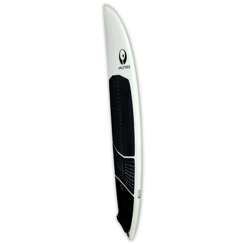 La gamme White Line regroupe les modèles best-sellers d’Appletree dans une construction standard éprouvée. Le cœur en mousse 50K closed cell exclusive est enveloppé d’un sandwich hex-skin : une couche structurelle de fibre de verre, un nid d’abeille flexible hex-skin, et une couche extérieure à 45°. Le bottom reste sans nid d’abeille pour préserver un flex maximal. Un renfort supplémentaire sous le pied avant complète l’ensemble.