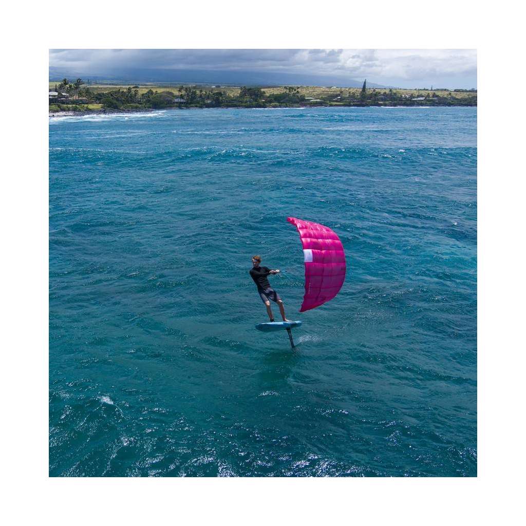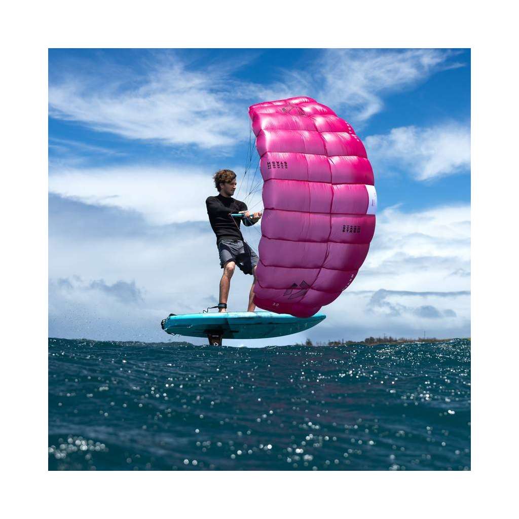 Grâce à ses brides colorées, au panneau central marqué et aux poignées visuellement différenciées, chaque étape de manipulation devient intuitive : de l’installation au redécollage, tout est pensé pour le rider autonome. Un simple mouvement du poignet suffit à gérer la puissance, avec une réactivité fluide et intuitive, même en conditions variables.