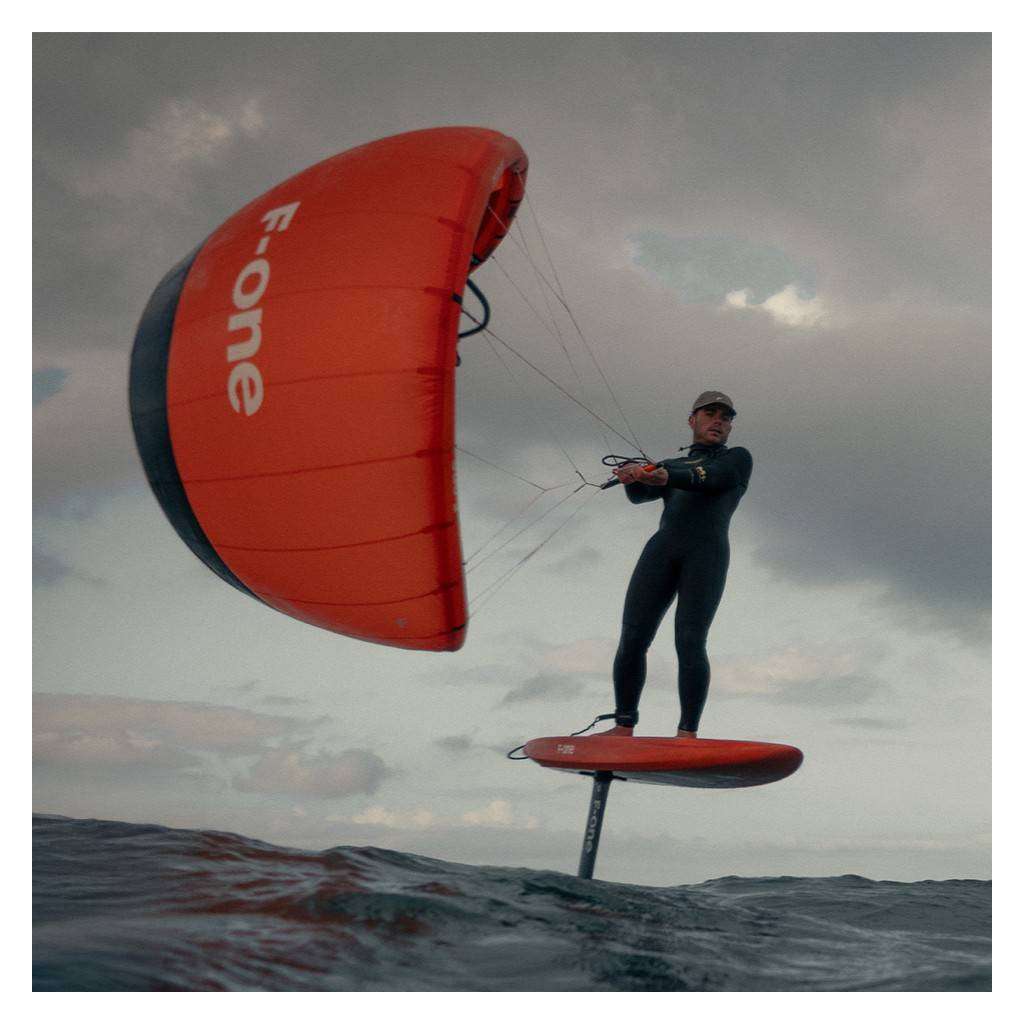 Hadou Brunner teste le F-One SK8 V2 750 cm² : carving, construction carbone améliorée, avis wingfoil et surffoil.