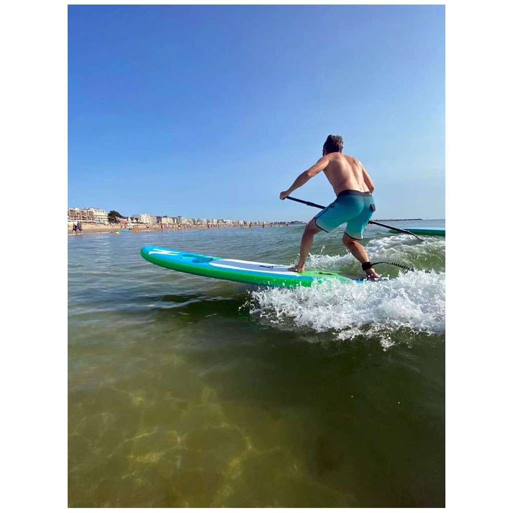 La forme 10'0 permet un bon compromis entre glisse et maniabilité. Que tu veuilles faire une petite sortie en solo ou partager une balade en famille, la planche reste confortable et simple à piloter pour des sessions détendues.