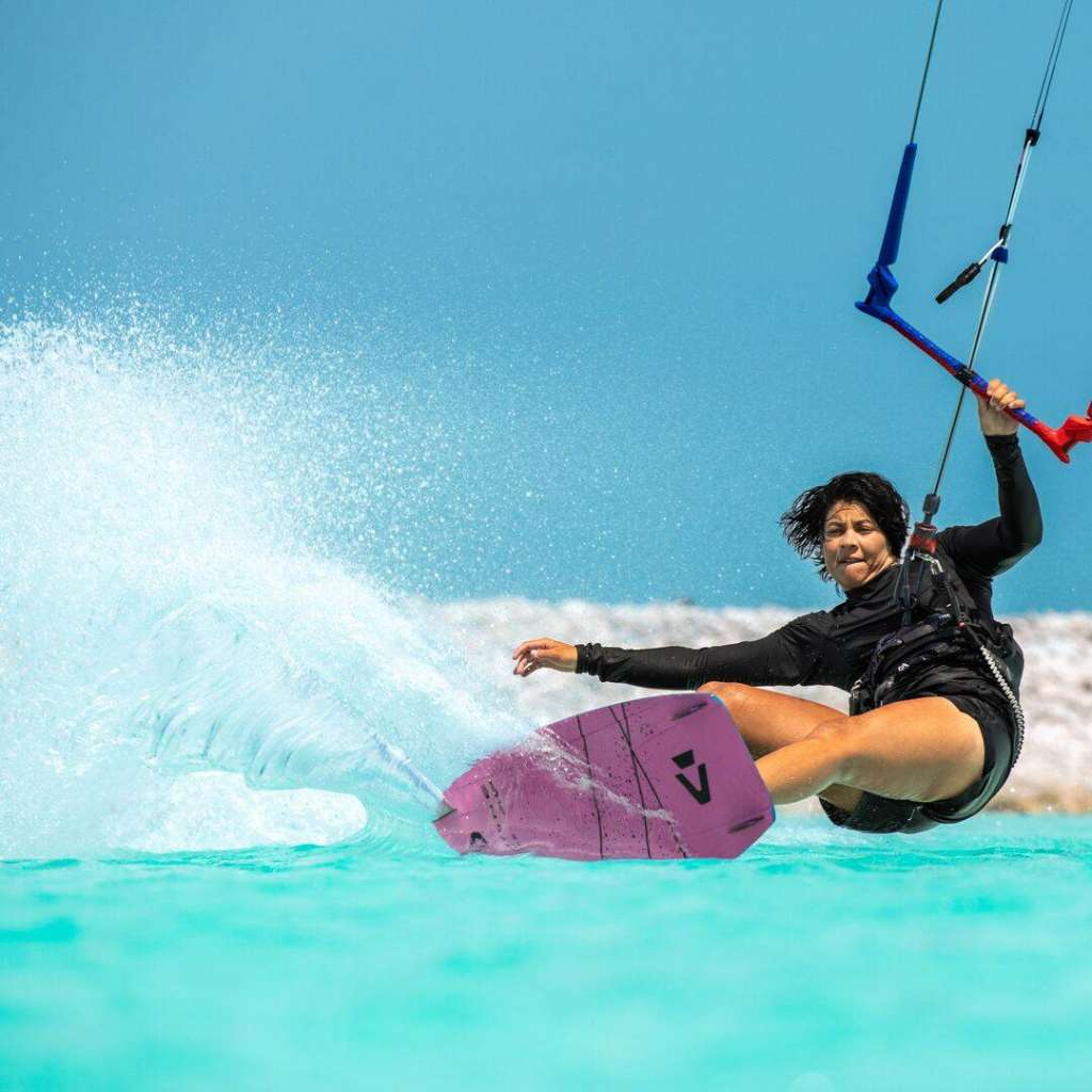 Les atterrissages sont adoucis par le Single Diffusor Bottom qui réduit les impacts et facilite la récupération pour enchainer les figures. En pratique, ça veut dire moins d'à-coups à l'atterrissage et plus de confort quand tu reviens sur l'eau.