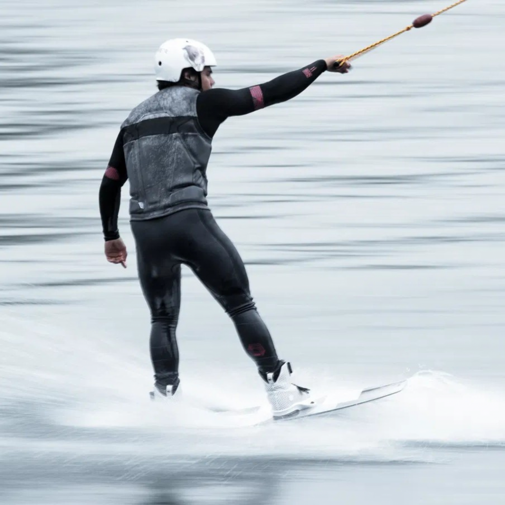 Le gilet utilise des mousses segmentées multi-couches placées de façon stratégique pour protéger côtes et colonne sans restreindre la mobilité. On sent la différence à l'impact : les chocs sont absorbés tandis que les zones articulaires restent libres, ce qui est utile en wakeboard ou lors de chutes contre la planche.
