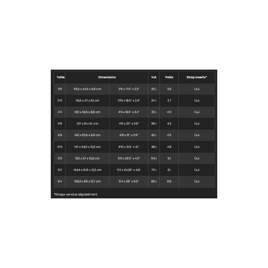 Tailles : 3'6 / 3'10 / 4'4 / 4'6 / 4'8 / 4'10 / 5'0 / 5'2 / 5'4